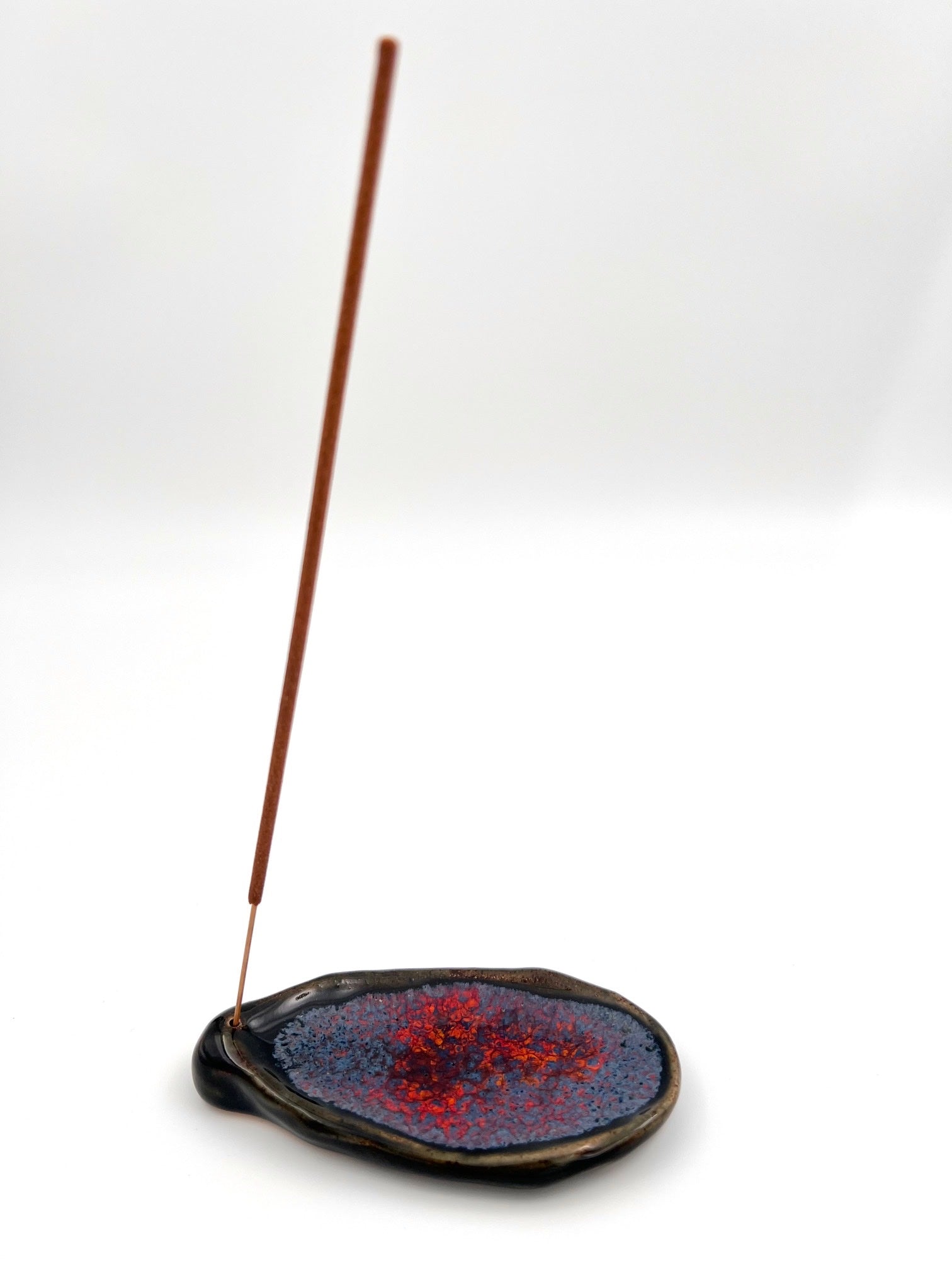 Rökelsehållare i mörkgrön med röd och blå