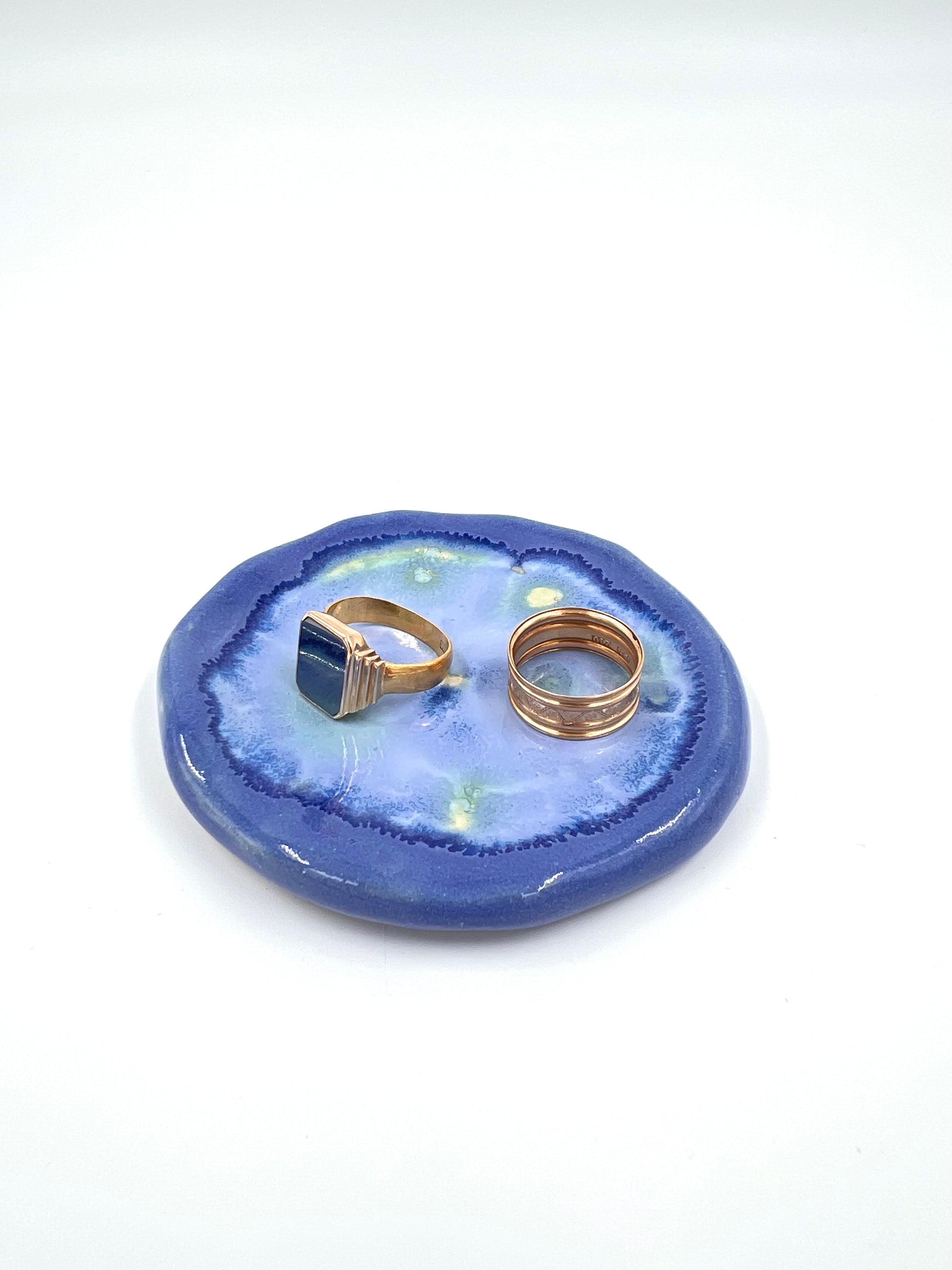 Litet fat i blå nyanser med inslag av ljusgrön.
