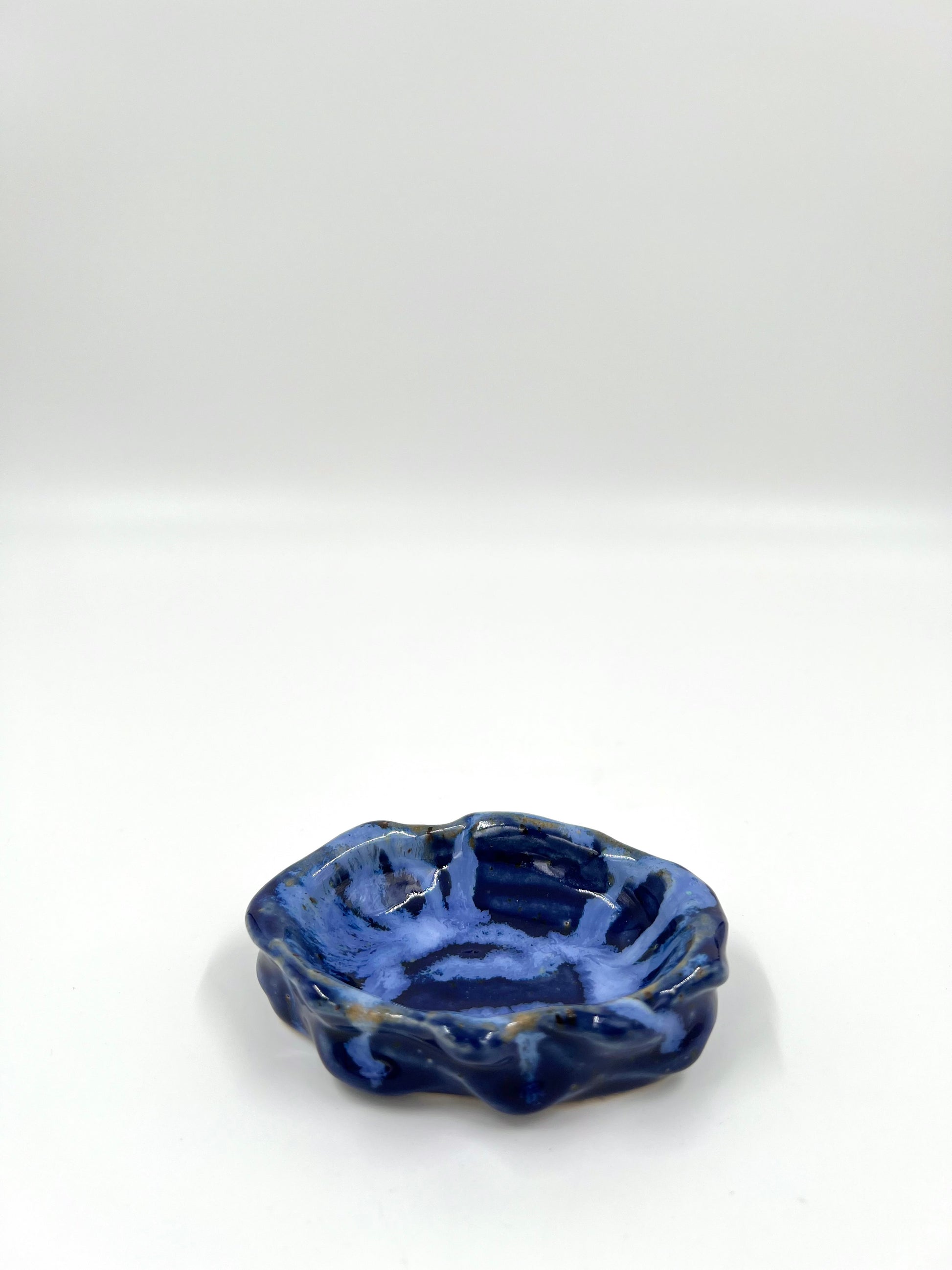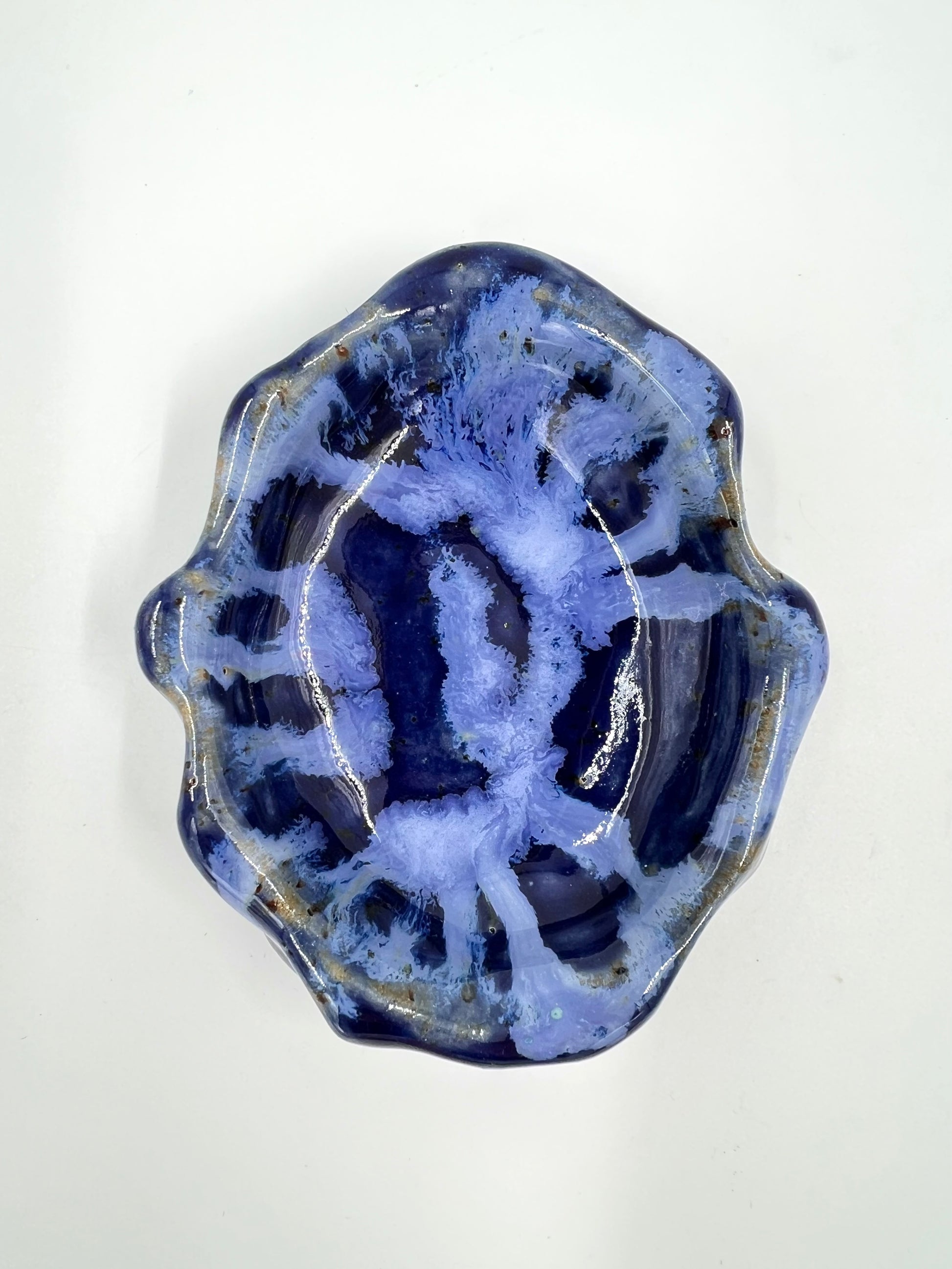 Liten skål i blått, formad som ett ostron.