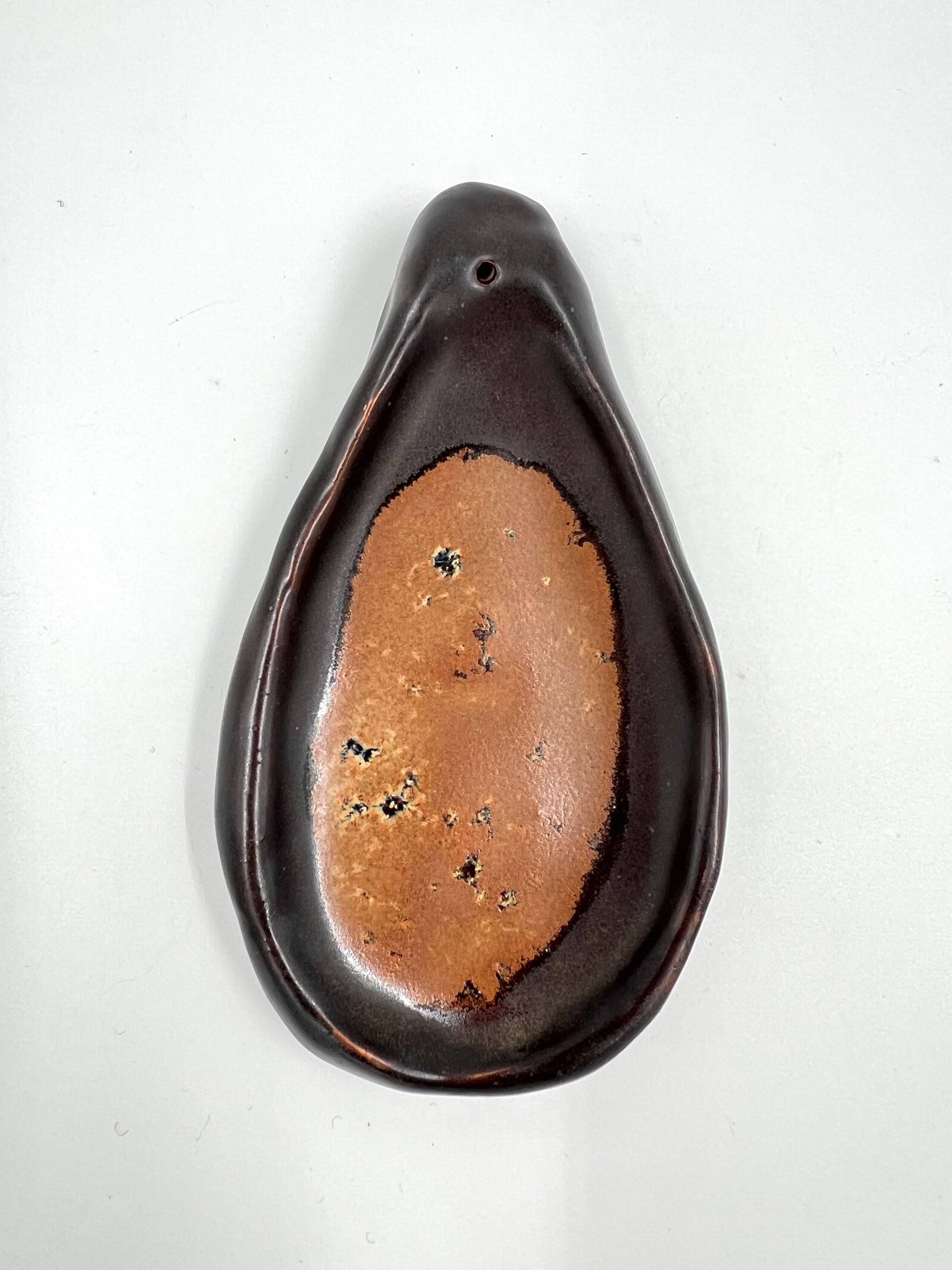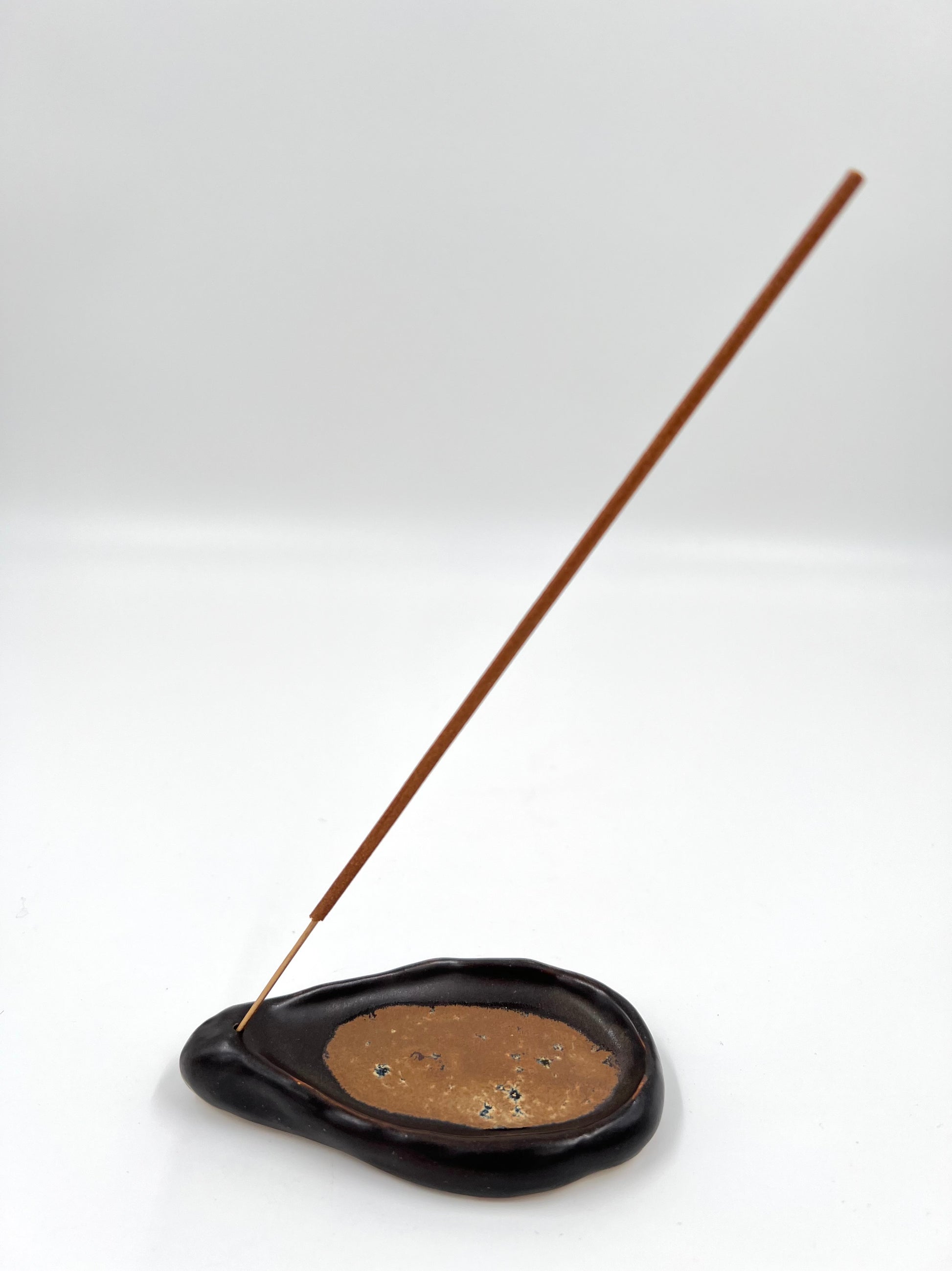 Rökelsehållare i matt brun och ljusbrun.