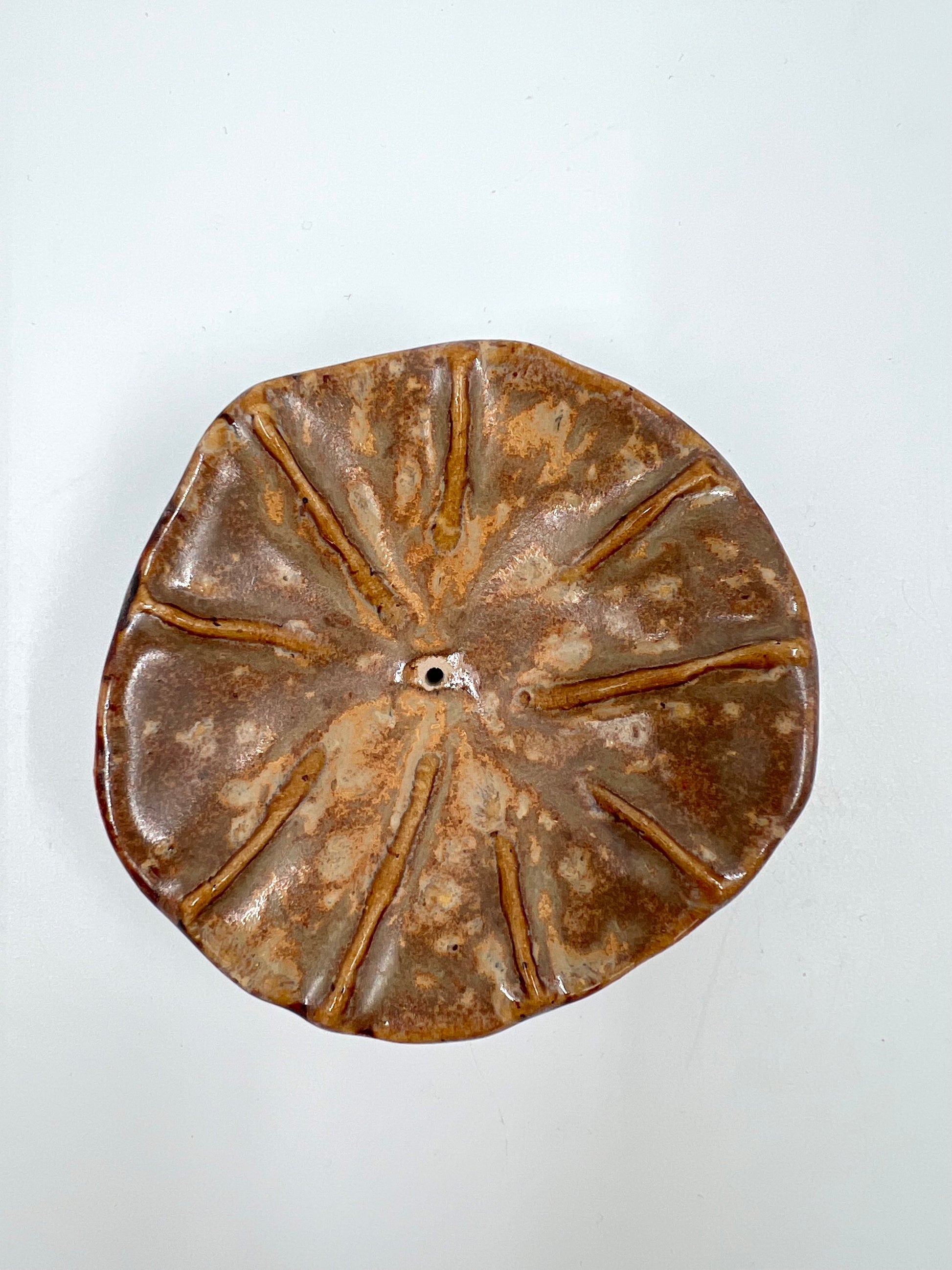 Blombruden rökelsehållare rund brun beige