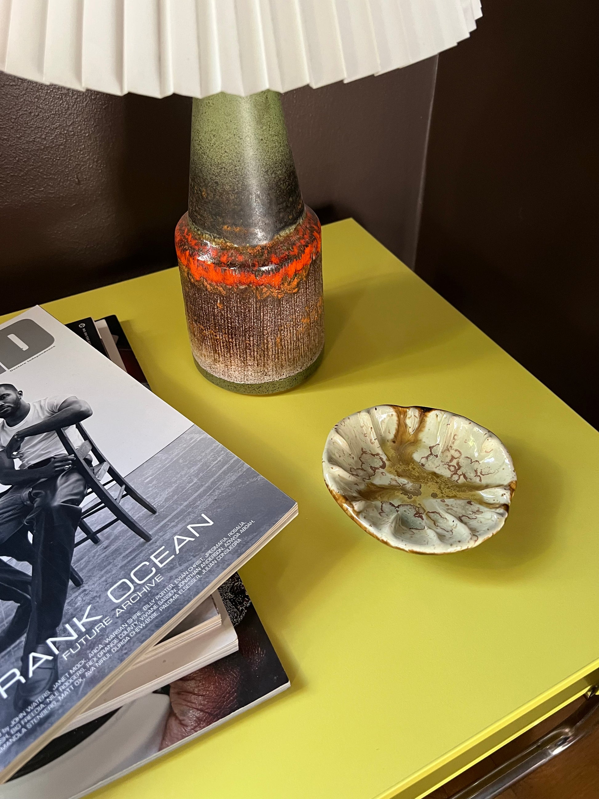 Skål i brun och ljusgrön.