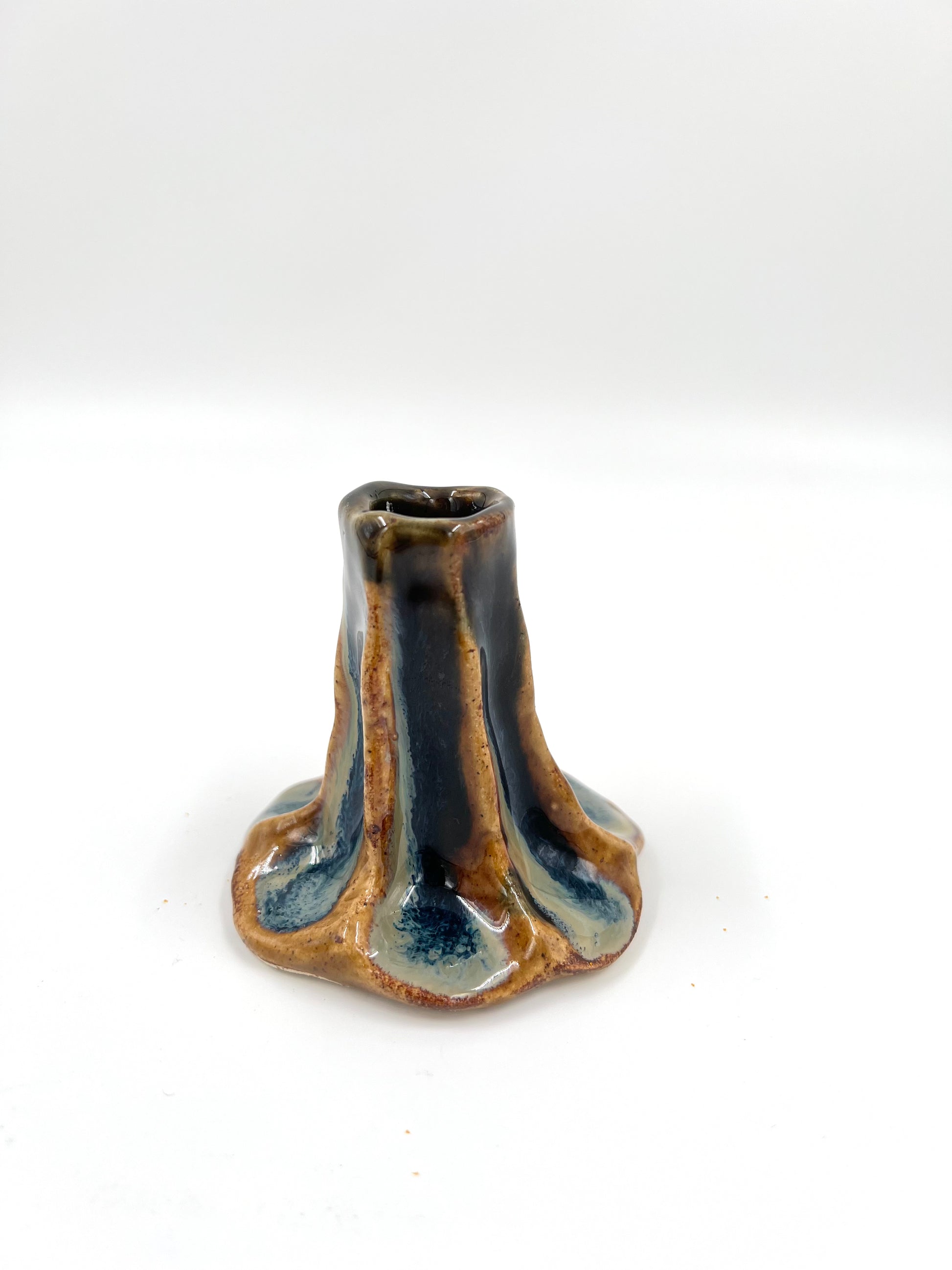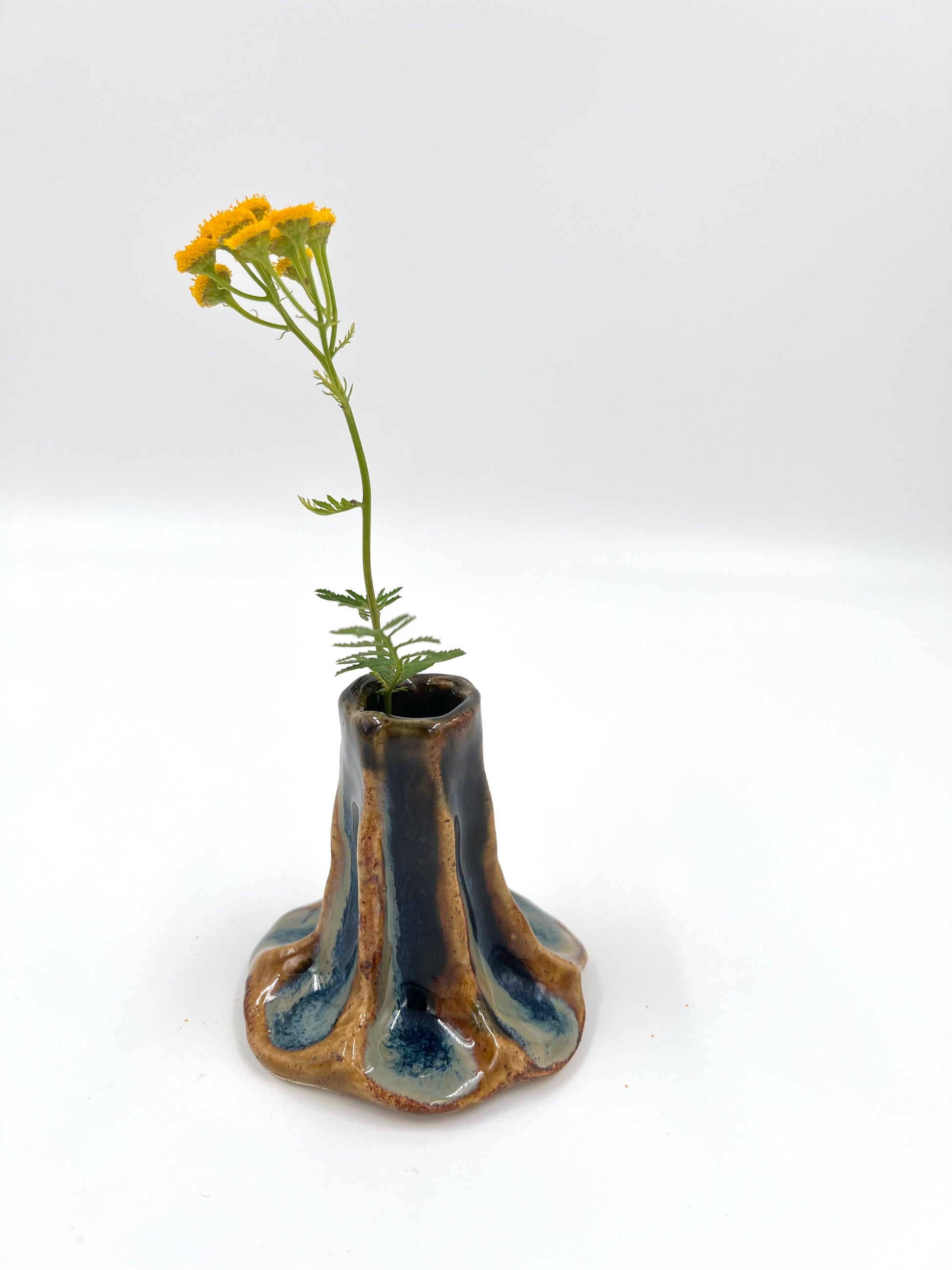 Liten minivas i ljusbrun med nyanser av blå och grön.