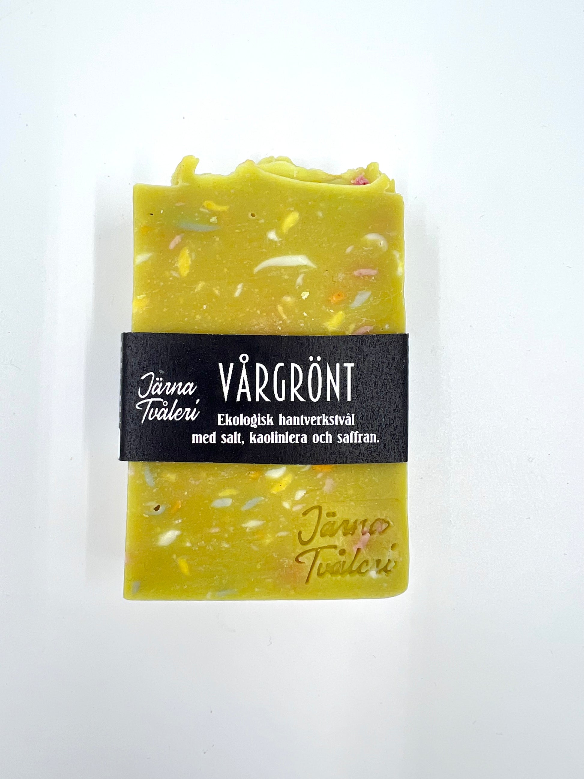 Förtvålad ekologisk rapsolja, förtvålad ekologisk kokosolja, förtvålat ekologiskt sheasmör, glycerin (naturligt förekommande i fetterna), vatten, förtvålad ekologisk ricinolja, havssalt, kaolinlera, ekologiskt socker, ekologiskt natriumlaktat, ekologisk eterisk olja från palmarosa och litsea cubeba, ekologiskt indigoextrakt, ekologisk eterisk olja från geranium och ylang ylang, ekologisk saffran, ekologisk eterisk olja från olibanum. Allergenerna Benzyl benzoate, citral, geraniol, limonene och linalool förkommer naturligt i de eteriska oljorna.